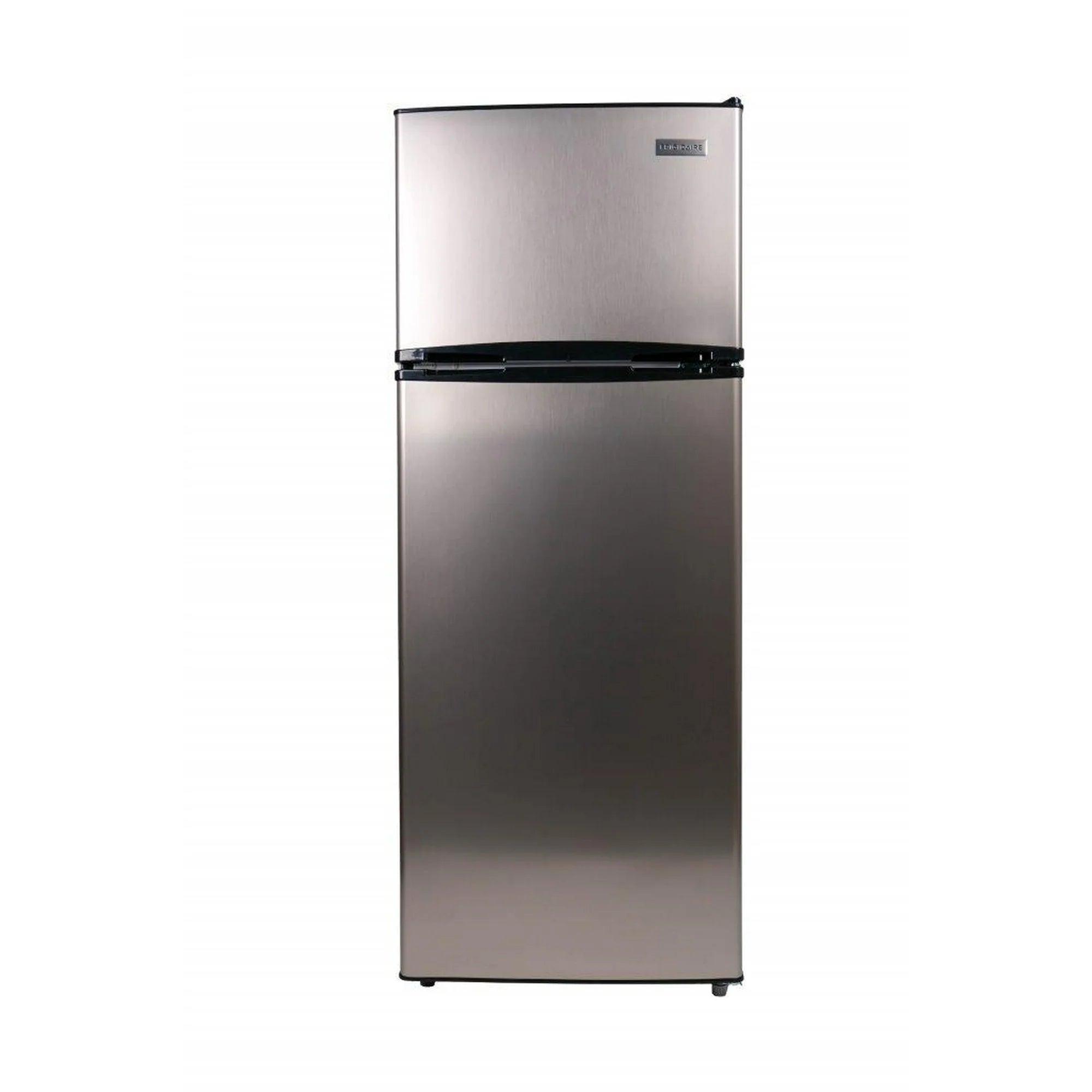 The Frigidaire 7.5 cu. ft. Refrigerator brings a blend of elegance and efficiency to your kitchen. With its platinum stainless look, this refrigerator not only enhances your kitchen's aesthetic but also delivers exceptional functionality. The top-freezer style and compact 7.5 cu. ft. capacity make it ideal for small to mid-sized families or as a secondary fridge.