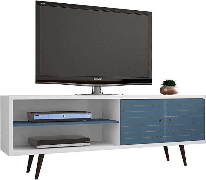 Manhattan Comfort Liberty Wood 63" TV Stand in Aqua Blue & White
