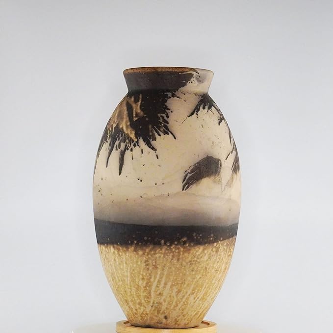 RAAQUU Large Oval Obvara Ceramic Vase (Pre-Order) - 13.5in Raku Handmade Pottery Art Centerpiece Home Decor with Serial Number