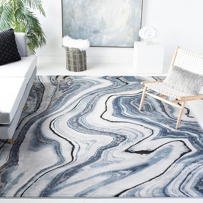 SAFAVIEH Craft Collection 6'7" Square Blue/Grey CFT819M Modern Abstract Non-Shedding Living Room Bedroom Dining Home Office Area Rug