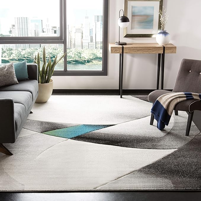 SAFAVIEH Hollywood Collection Area Rug - 5'3" x 7'6", Grey & Teal, Mid-Century Modern Design, Non-Shedding & Easy Care, Ideal for High Traffic Areas in Living Room, Bedroom (HLW713D)